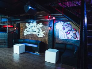 The 90s floor has been such a surprise in so many ways. Decades’ music video system doesn’t get enough credit. Since the opening in November through nine months later right now, that floor has evolved into something completely insane. The music is the big seller on that floor, and some of the more super pop-friendly songs I play just don’t have the same impact that they do in the club without the video. All of the sing-alongs, the videos really set them off. The videos add so much to the night. I mean, where else can you go from The Bloodhound Gang’s “The Bad Touch” into Whitney Houston’s “I Want To Dance With Somebody” into a dance mix of Shania Twain’s “Man I Feel Like A Woman?” There’s been nights when I’ll play that exact combination of songs and I get girls high-fiving me! That’s not EVERY night, but come check me out on a Saturday night, and as long as it’s 90s and the crowd — especially the girls — are digging it, from house to pop to rap, hell if it works, almost anything, I’m open to playing it.