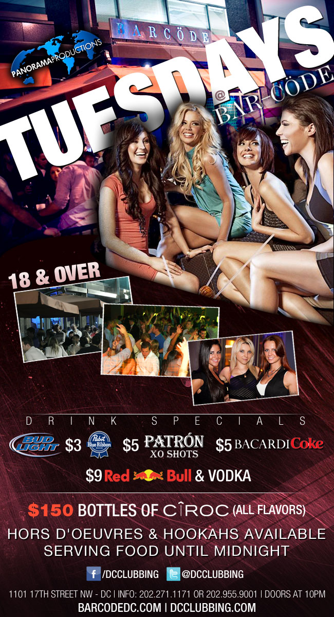 Tuesdays at Barcode bring 18+ nightlife to a new level. Insane drink specials, hookah on the patio and a full menu served until midnight are just the beginning.
