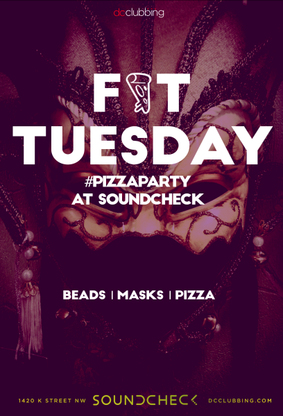 DCClubbing’s super-popular Pizza Party brings more than pepperoni, extra cheese, Hip Hop and trap to the club this Tuesday. It’s Mardi Gras! aka Fat Tuesday. It’s one of DC’s best parties on the biggest party night of the year. Also! Grab your FREE beads, masks and hats before going in, this will be epic!