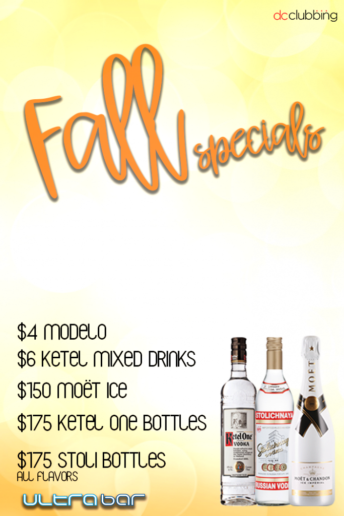 Fall into your autumn weekend witht enticing and exciting specials on drinks and bottles including: